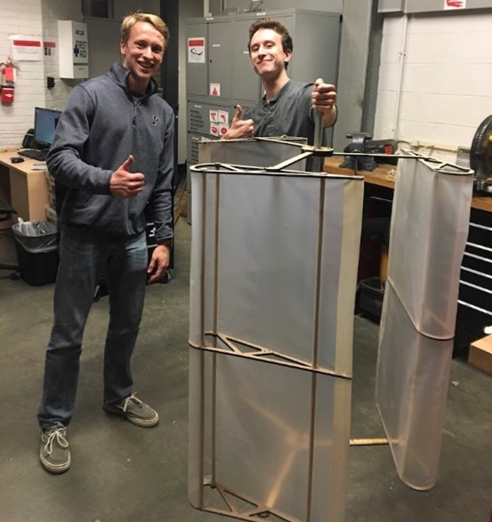 We decided to build a triple Lenz with a 9º angle of attack as our full-scale turbine. We scaled the turbine to be as large as possible while still ensuring it fit through a standard door (36”) since power output increased directly with area.